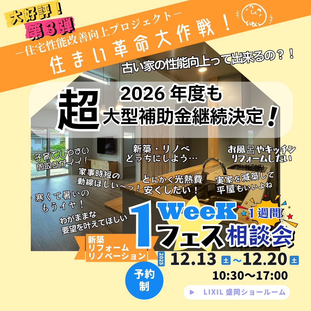 1月から開催して参りました「リフォームリノベ相談会」第3弾も元気に開催いたします! ✨\住宅性能改善向上/✨ ★第3弾★リ...