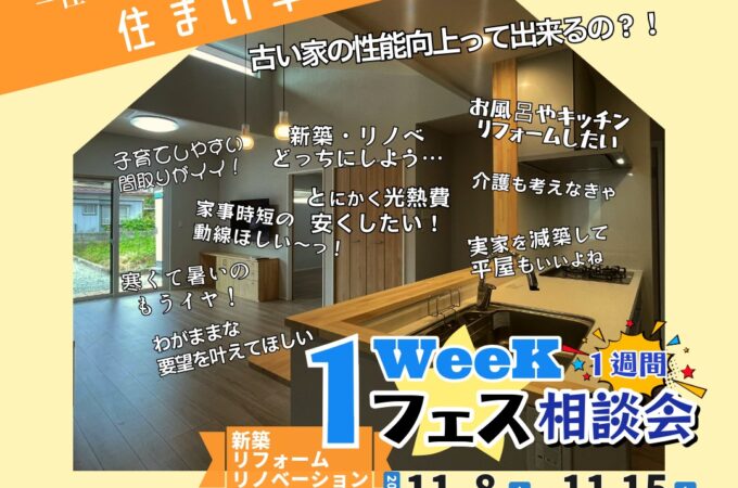 日増しに秋の深まりを感じるようになりました。 寒い冬が来る前に! 住まいの相談会を開催いたします。 住まい革命大作戦!◉1weekフェス相談会 今回は...