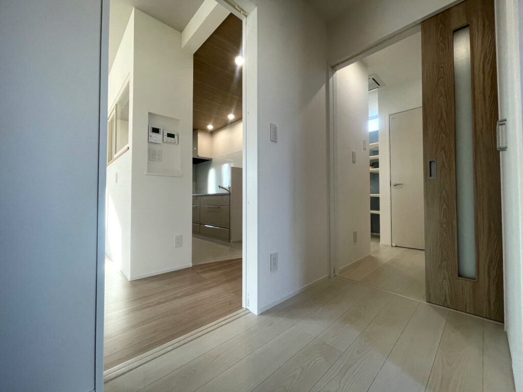 玄関・水まわり・キッチンをつなぐ回遊動線や、